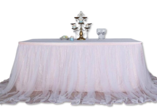 DescriptionElevate the elegance of your event with our premium table skirts available for rent. Perfect for weddings, corporate events, banquets, and any special occasion, our table skirts provide a polished and sophisticated look to any setting. Crafted from high-quality fabric, they are designed to drape beautifully and fit securely around your tables. Available in a variety of colors and sizes, our table skirts can complement any theme or decor. Easy to install and remove, they offer a hassle-free solution for transforming ordinary tables into stunning focal points. Enhance your event's aesthetic with our stylish and versatile table skirts today.